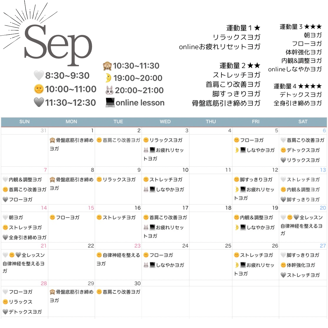 【2025.Sep】yoga lesson schedule