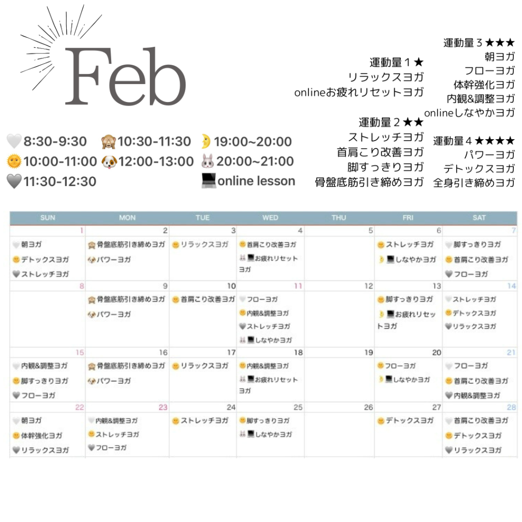 【2026.Feb】yoga lesson schedule