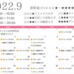 2022年9月11日 / 最終更新日時 : 2022年9月11日 mibiii.t お知らせ 【お知らせ】営業時間変更・ヨガレッスン増設について 日頃より、NADI YOGA SALONをご利用いただいております皆様へお知らせいたします。 いつも当スタジオをご利用いただきありがとうございます。 2022年10月1日(土)より営業時間の変更・火曜日夜のレッスン増設を […]